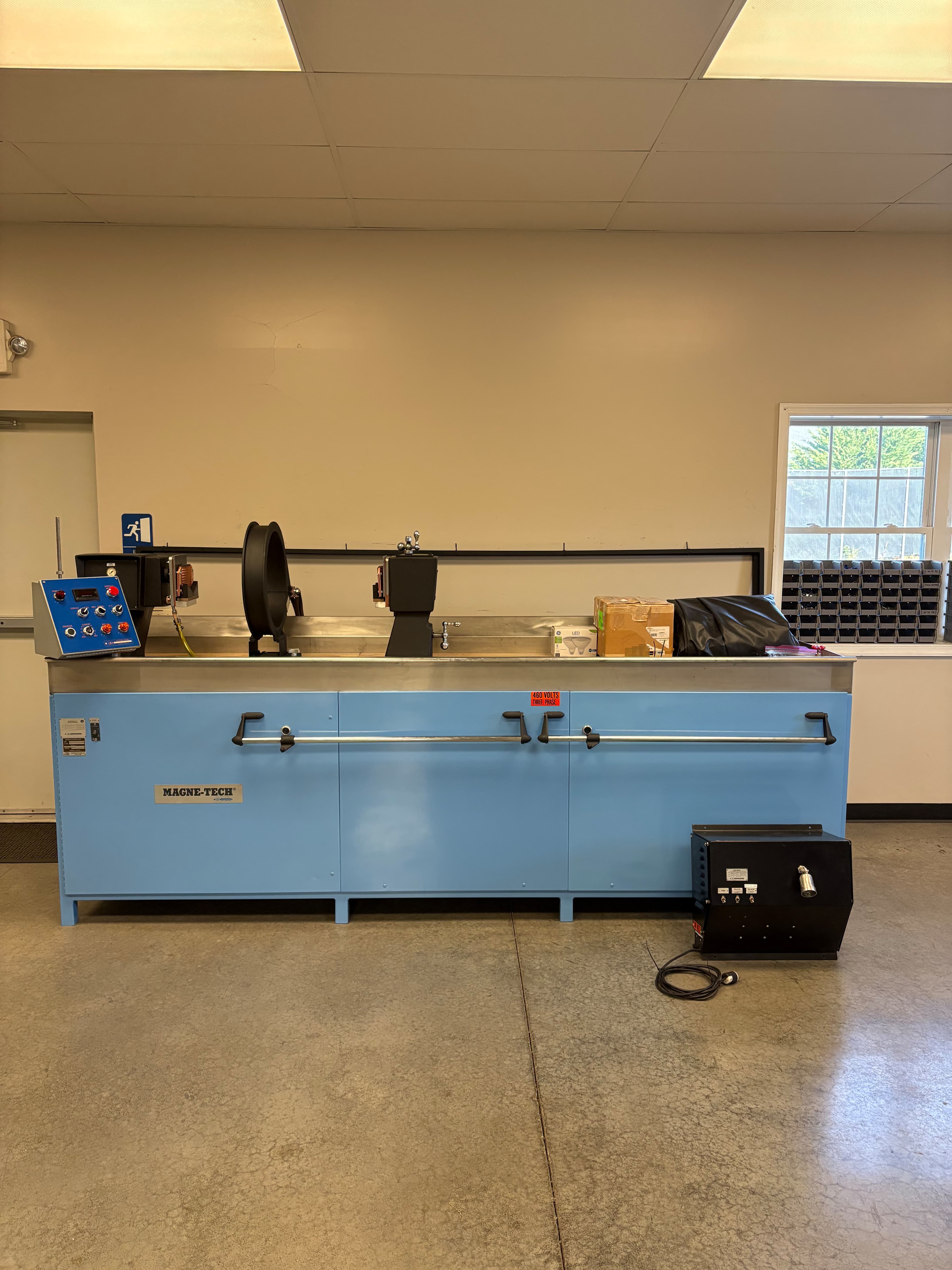 5000 AMP AC with decaying demag, 16 inch coil, 100 inch max part size. Input 240V-200 AMPS or 480V-100 AMPS. Hood assembly with frame, curtain, fan and white light