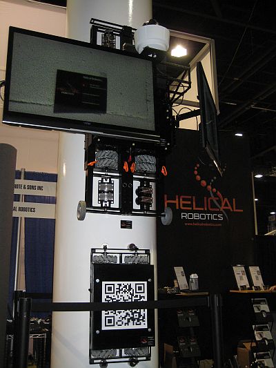 Recently, Helical Robotics used the American Wind Energy Association (AWEA) 2012 Conference and Exposition in Atlanta Georgia to unveil their newest platform, the HR-1000LL. This newest system helps to expand their offering of robotic platforms, by allowing a single operator to lift hundreds of pounds up tower. The multiple designs from Helical Robotics cover payloads from light cameras to heavy industrial equipment.
