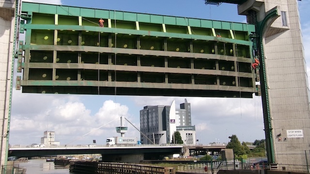 Posted: 2025-1-20Specialist rope access techniques were used by technicians to access the concrete and steel components of the Grade II listed Hull tidal surge barrier during recent inspection and testing works.