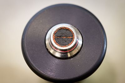When a transducer is pressed onto a rough surface, its delays will wear at a faster rate than the metal ring that surrounds them. As the transducer’s surface wears away, its efficiency will diminish because the couplant layer required to fill the gap between the transducer face and the object being measured becomes thicker. If the couplant layer becomes too thick, too little sound energy will be transmitted into the test object, and the transducer will appear to lose sensitivity. Another side effect is that your thickness gage may have difficulty performing a "Do ZERO". If either of these occur, it’s time to try resurfacing the transducer.