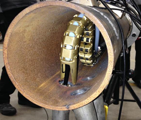 Despite promising results, electromagnetic NDT techniques deployed to externally inspect finned tubes were shown to be limited by access due to HRSG design. We therefore determined to develop an internal NDT technique which can be remotely deployed via headers through standard inspection stubs. The initial challenge for inspecting finned tubes in HRSGs is first to be able to deploy the NDT probe at a chosen location.