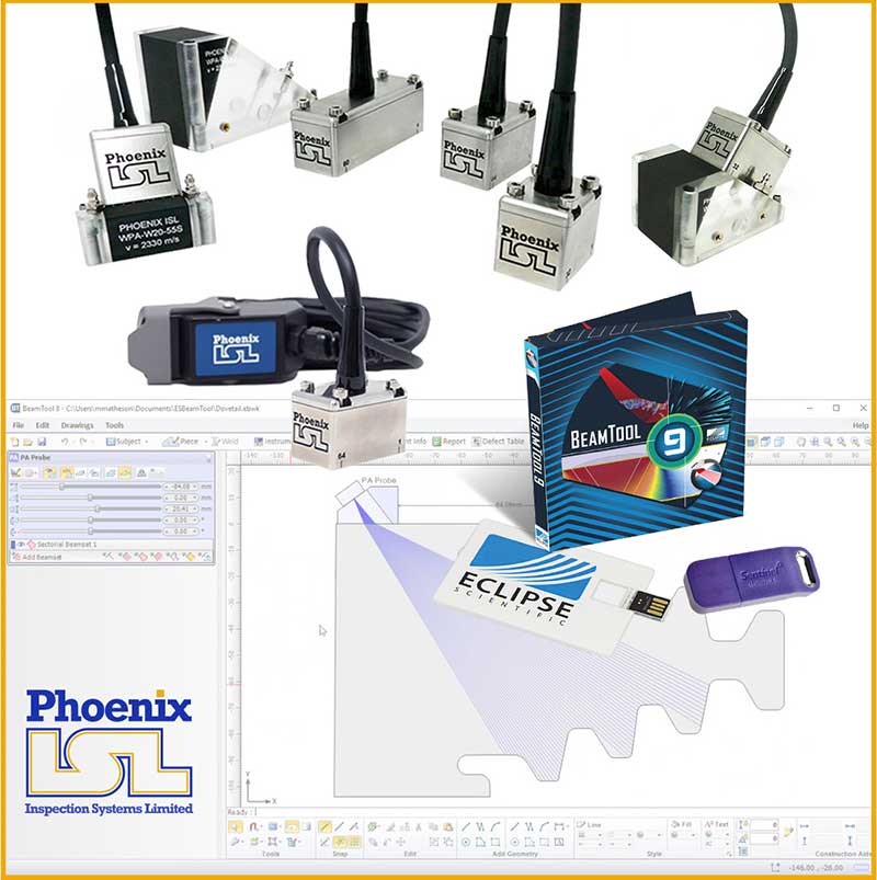 Phoenix Inspection Systems Limited have collaborated with Eclipse Scientific to enable customers to easily set up their scan plan through the ES BeamTool 9 software. The latest software release gives customers the ability to easily configure their Phoenix ISL phased array probes and wedges to ensure they have the best scanning coverage possible through great simulation.