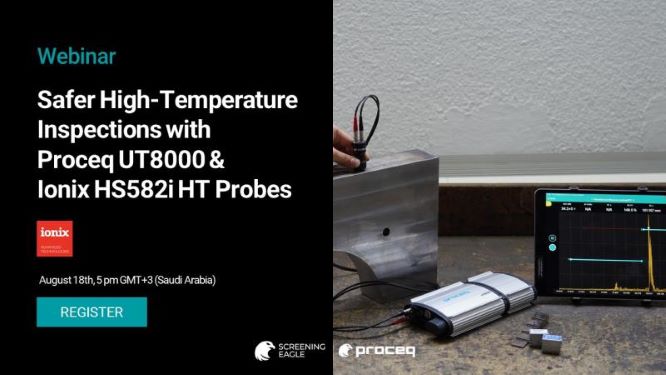 In collaboration with the Saudi Arabia branch of ASNT, Proceq - a Screening Eagle Technologies company and Ionix Advanced Technologies Ltd will be presenting a joint webinar "Safer high-temperature inspections with the Proceq UT8000 and the Ionix HS582i HT probes."