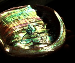 Image: Nacre, or mother-of-pearl, found in red abalone and other mollusks, is extremely fracture-resistant. That’s one reason researchers are interested in the natural material, and why UW–Madison scientists wanted to find a method to measure its thickness without harming the nacre. COURTESY OF KATS LAB / UW–MADISON