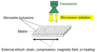 It is worth noting that researchers in applied magnetism have worked with glass-coated microwires for decades [1-4]. Magnetic microwires are proposed for applications in many industries including: microelectronics, sensorics, security electronic surveillance, medicine, aerospace, energy harvesting/conversion, home entertainment, electrical engineering, magnetic memories, composites monitoring and more. Trends regarding these applications have been reported in several recent review papers [5-10]. One of the main applications for composites is in nondestructive monitoring of stress and temperature.