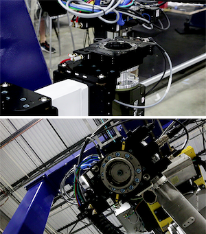 The hardware and equipment for the inspection process are quite different from the supplies needed for painting and sanding; however, ABX was able to integrate all three inspection operations into one process with custom-configured QC-210 Heavy Duty Tool Changers from ATI. The configuration includes ATI Utility Modules that pass utilities such as pneumatic air for compliance tools, electrical signals, and a Gigabit Ethernet for network communications through the tool changer directly to the EOAT.