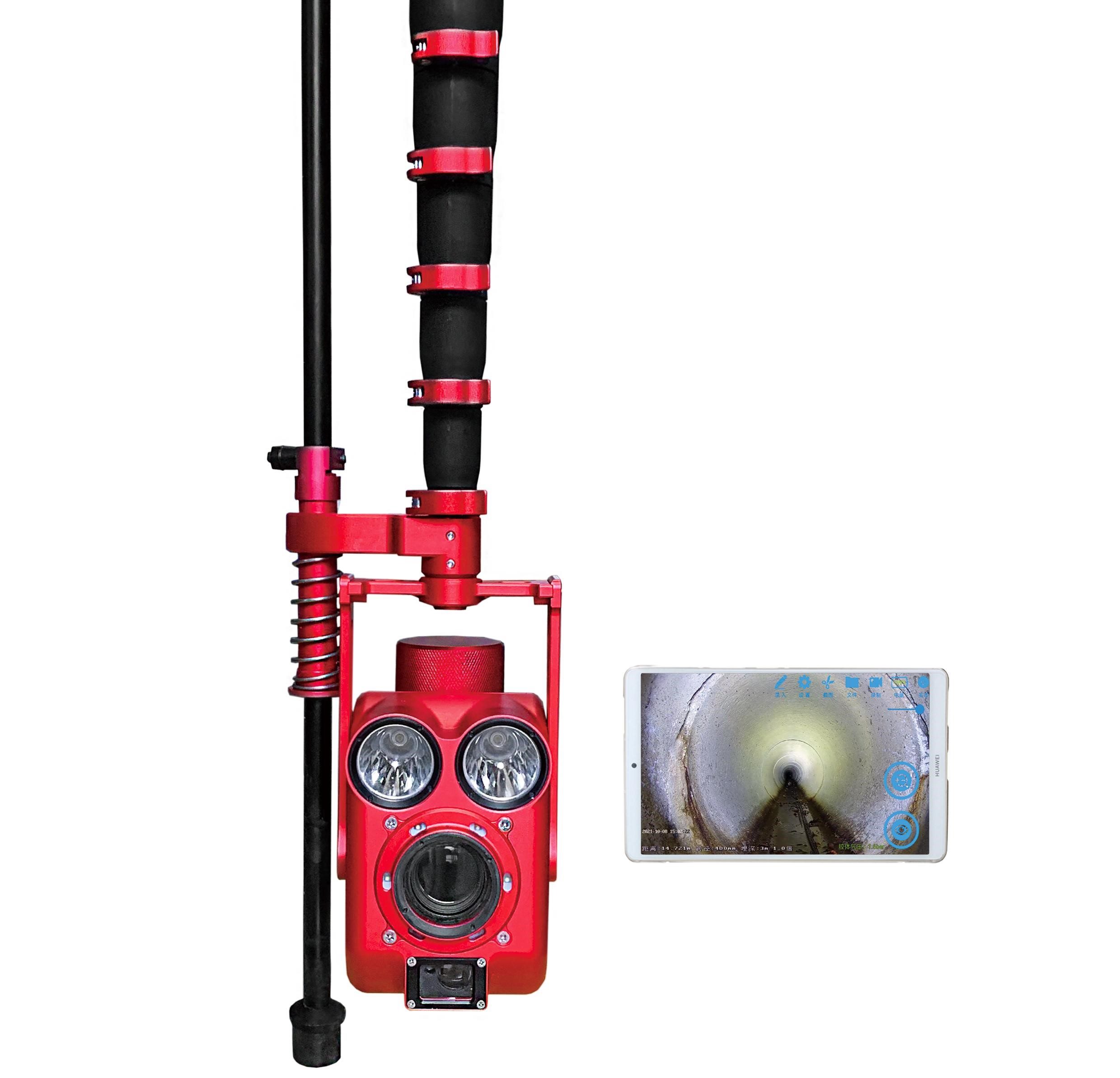 Motorized Camera Head: The camera head tilts 60° up and 30° down, providing effective coverage of the inspection area. The motorized rotation can be remotely controlled for easy adjustments during inspections.
