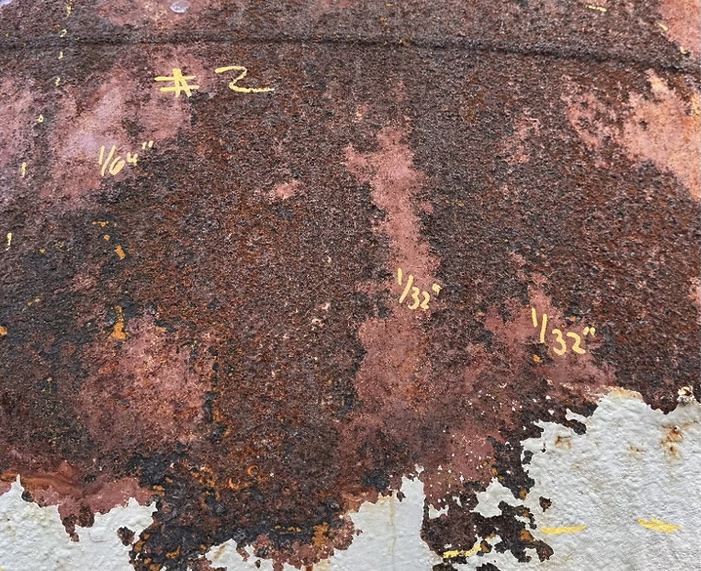 Because each corrosion pattern behaves differently, every affected area must be evaluated individually, and a detailed inspection is required to characterize the corrosion mechanism and its extent before any repair strategy is developed. In most situations, isolated pitting does not significantly compromise the structural performance of the shell unless the pits are deep, clustered, or closely spaced.
