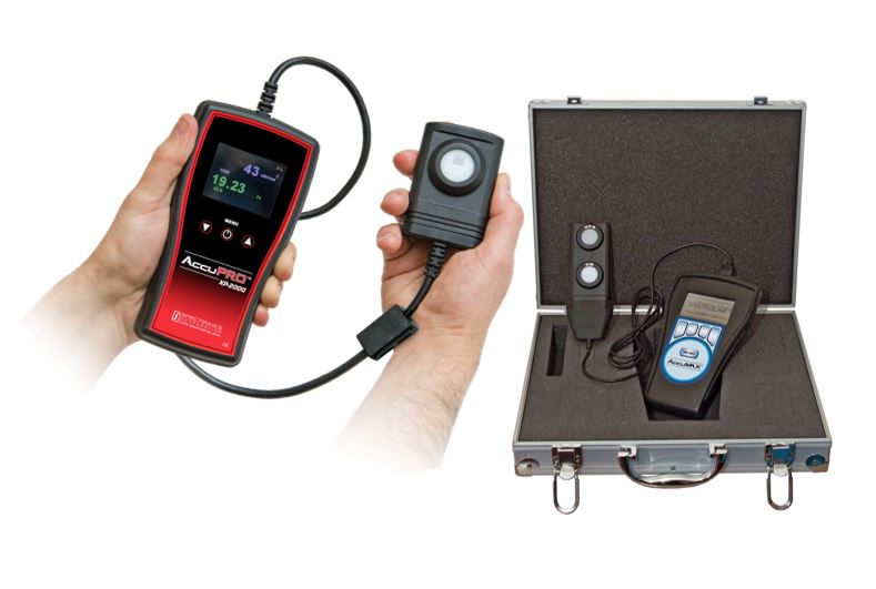 DIGITAL, advanced meters with dual wavelength sensors for UV/Blue and visible light. Compact, lightweight, and battery operated, for convenience use in the field.