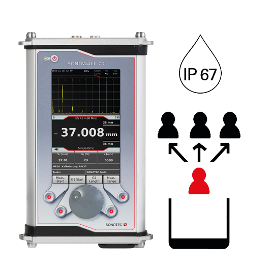 The powerful SONOWALL 70 is perfect for a wide range of ultrasonic wall thickness measurement applications including standard testing of metals, glass and ceramics. In high penetration mode high attenuating materials and structures become possible to measure such as composites, plastics, rubber, fiberglass or thick castings.