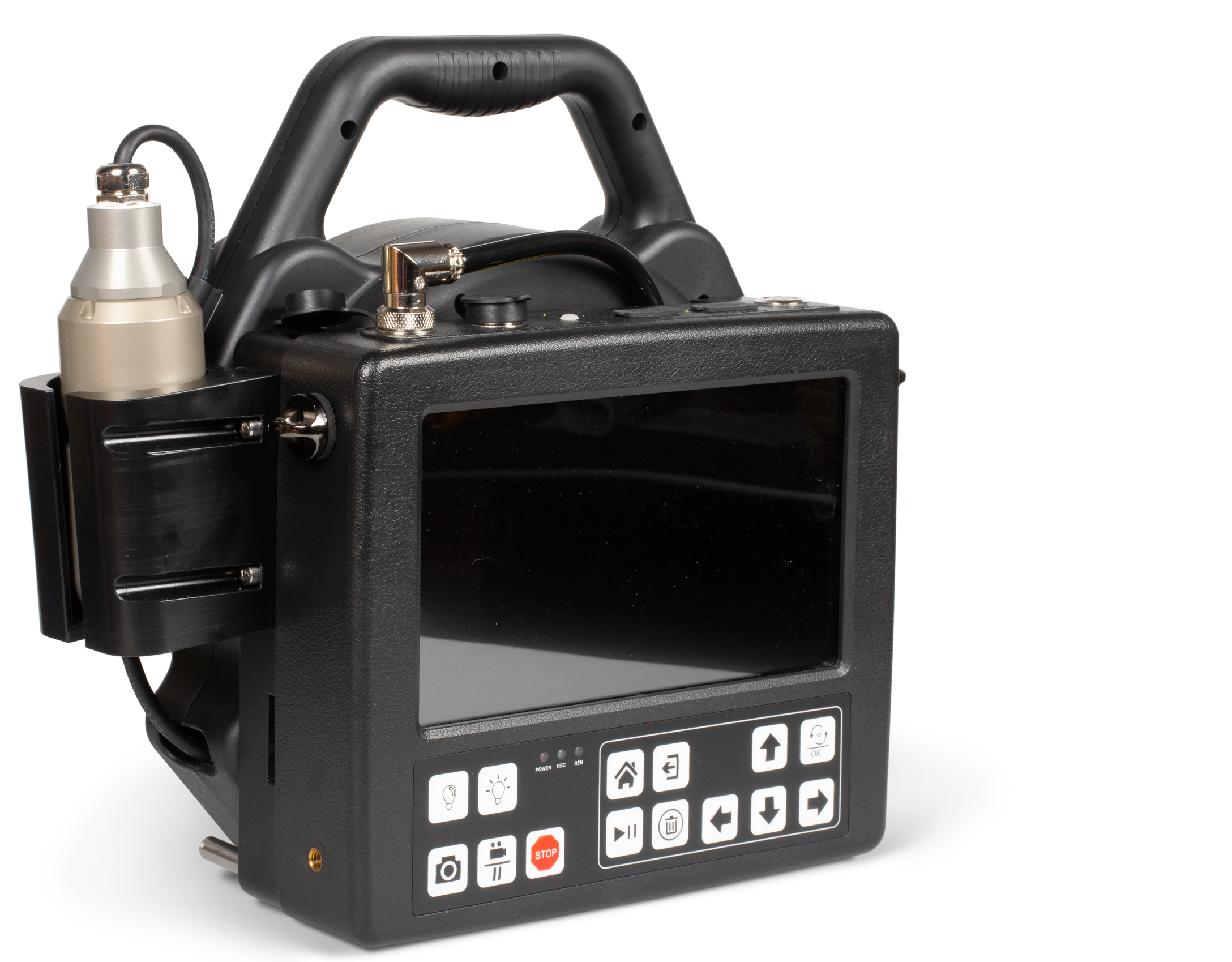 compact solution for inspecting small sewers, wells, chimneys, and pipes? Our Duct-Scan Micro Duct Camera is the perfect solution; its lightweight design allows the user to perform quality inspections where it's impossible to use the bigger inspection units. This unit can use two interchangeable camera heads with integrated super-bright LEDs: a dual-view camera head and a pan & tilt camera head. Equipped with quality sensors, they deliver 1024x768 resolution images to an 8" HD display. For increased compactness, the manual reel with a 20M(65ft) cable is fused together with the control box. Other features include an on-screen counter, IP68 camera head rating, and up to 4hrs of battery use. Overall, our Duct-Scan Micro Duct Camera is a small, unique inspection tool where compactness and portability are required. |