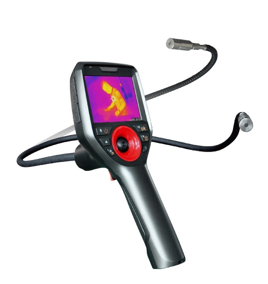a special device to conduct inspections using thermal imaging. Equipped with temperature measurement technology, this tool is useful in fire protection, police investigation, search and rescue, home inspections, anti-terrorist operations, and inspections in dark environments. The 17mm semi-rigid probe delivers 80x60 thermal images to the 3.5 HD display. Protected by a layer of tungsten braiding(IP67), the probes feature DDE image-enhancing technology and are 1m(3.2ft) long. Additional features include a germanium glass protection lens, a titanium alloy-protected tip, and one-touch image capture. With all these features combined into one portable unit, the Voyager Thermal Borescope Camera is a cost-effective and comfortable tool for inspecting dark environments with thermal imaging. (An optional Pro version with a higher resolution is available) |