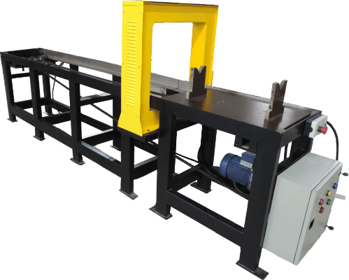 Motorized Trolley Demagnetizer - This demagnetizer uses a motorized trolley to carry the component from one end to the other. The trolley is connected to a chain driven by a geared motor. Three different sizes of coil opening are available, 200X200mm, 300X300mm & 500X500mm.