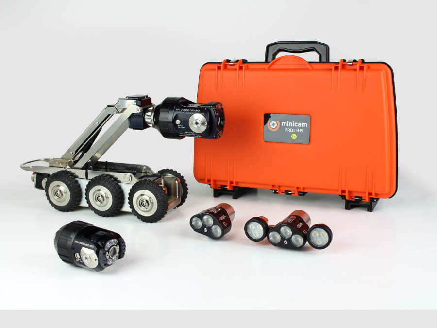 The Proteus™ ExZ1 is engineered to meet the highest safety standards, holding an ATEX Zone 1 certification that guarantees its suitability for use in hazardous locations. Its intrinsically safe design is a core feature, preventing any potential for sparks or heat generation that could lead to an explosion. This robust robotic system is highly portable and designed for seamless integration into diverse field operations. It features a powerful robotic tractor capable of inspecting pipes from 6 to 24 inches in diameter, with an optional expansion to 40 inches. The integrated motorized elevator ensures precise camera positioning for optimal viewing and accurate defect identification. The intuitive control unit of the Proteus™ ExZ1 offers superior operational control through twin ergonomic joysticks and a soft-touch keypad. The system features a 10-inch XGA sunlight-readable display, providing crystal-clear imaging even in challenging outdoor conditions. Integrated ProPIPE+ and WinCan software streamline the inspection process, enabling immediate image and video capture, advanced report generation, and seamless data management via WiFi or USB. A vital safety feature is the built-in override key switch, which immediately cuts power upon detection of any ATEX non-compliances, ensuring maximum operational safety. To further enhance its versatility, the Proteus™ ExZ1 is compatible with interchangeable explosion-proof camera heads, offering optical and digital zoom capabilities, continuous 360° rotation, and +/-135° pan. These nitrogen-pressurized camera heads are ATEX Zone 1 certified and waterproof up to 1 bar, ensuring reliable performance in extreme environments and providing precise measurements of pipe diameters, defects, and objects. |