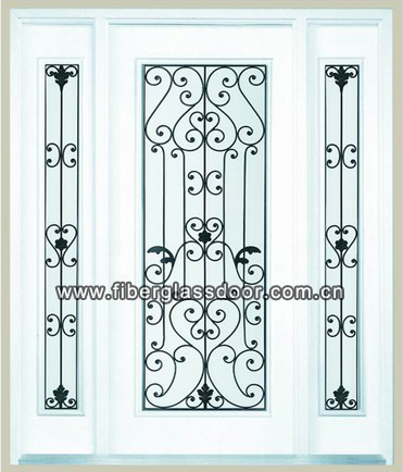 decorative glass,triple glazed beveled glass, insulated wrought iron inserts, internal minblinds, blinds between glass (BBG)