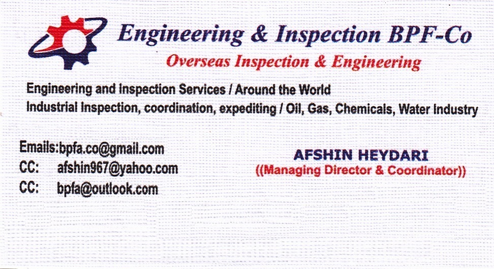 we are performing inspection and expediting in industrial projects related to oil, gas, petrochemicals, water treatment, and air filtration and purification in some European countries and Asian ones
